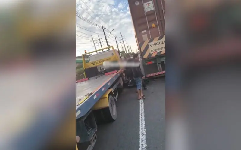 Motociclista tenta ultrapassagem e colide com caminhão na avenida das Torres