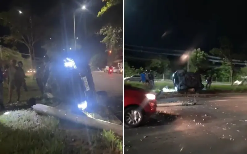 Segundo testemunhas, o motorista trafegava em alta velocidade quando saiu da pista, invadiu o canteiro central e, em seguida, colidiu violentamente contra um poste de iluminação, que foi derrubado e ficou atravessado na via.
