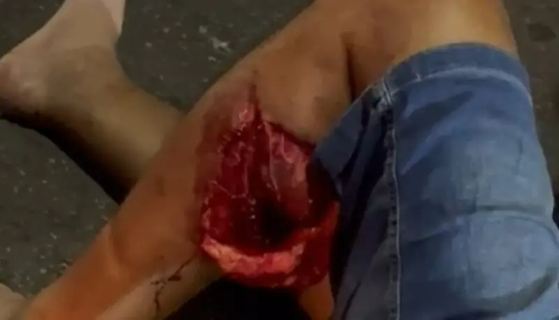 Na noite desta quinta-feira (1º), um grave acidente deixou um motoqueiro severamente ferido na avenida Oscar Borel, na Compensa, Zona Oeste de Manaus. O motociclista, que ficou praticamente sem a perna após a colisão, foi socorrido por uma equipe do Samu, ainda gemendo de dor.