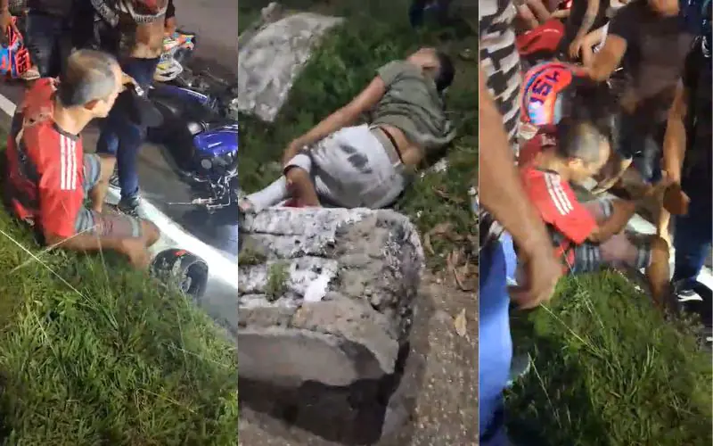 Na sequência, o homem apontado como responsável pelo acidente foi agredido por outros motociclistas e populares que presenciaram a batida. A reação ocorreu logo após a forte colisão.