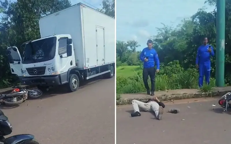 Ao sair da trajetória, a motocicleta invadiu a contramão e colidiu frontalmente com um caminhão-baú, cujo motorista não teve tempo para reagir. O impacto deixou o motociclista gravemente ferido, permanecendo agonizando na estrada.