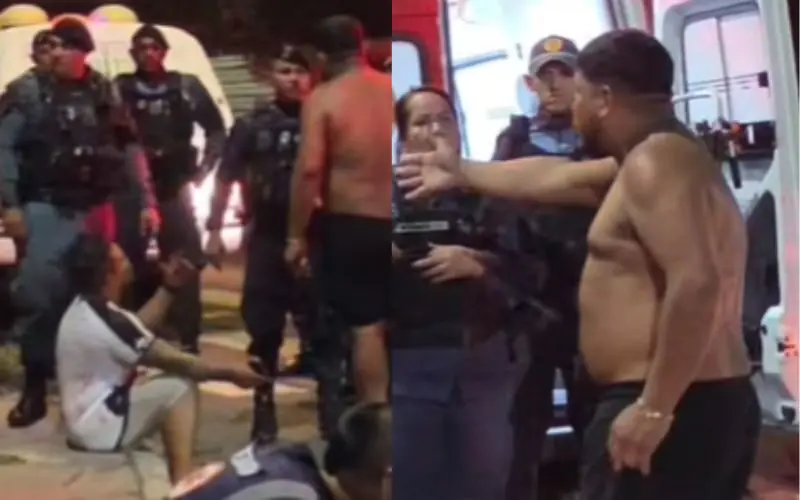 Após o impacto, os ocupantes do veículo desceram e passaram a agredir o motociclista, que estava caído no chão, com socos e chutes. A Polícia Militar atendeu a ocorrência e, durante os procedimentos, os suspeitos entraram em confronto com os policiais.