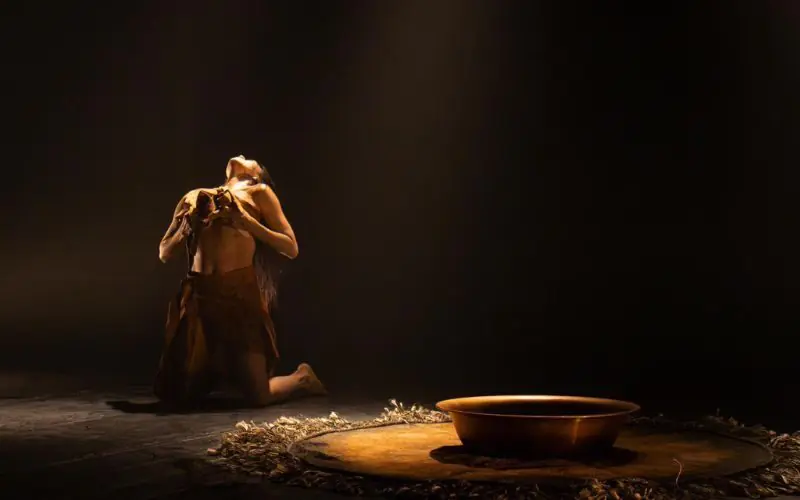 A dramaturgia, construída a partir de camadas sensoriais, reúne dança, canto, memória ancestral e uma forte presença sonora e visual. A trilha conta com composições de artistas amazônicos e vozes que integram o coro feminino da obra.