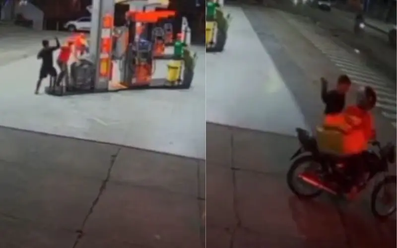 Imagens de câmeras de segurança capturaram o momento de um violento ataque a faca ocorrido em um posto de combustíveis no bairro Zumbi, zona leste de Manaus. O crime deixou um frentista e um motociclista feridos e foi registrado em vídeo.