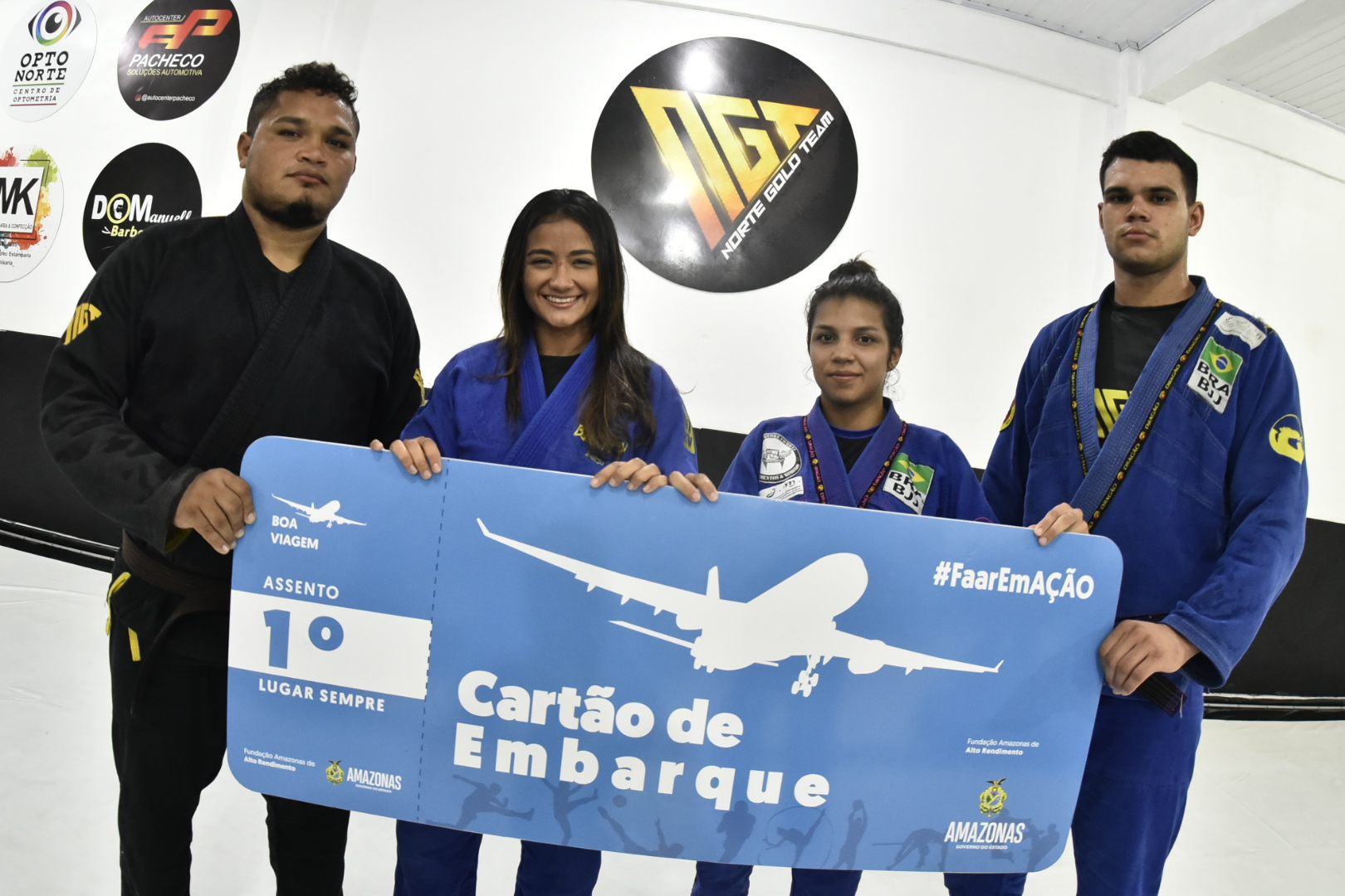 Atletas da academia Norte Gold Team (NGT), do bairro Santa Etelvina, vão representar o Amazonas no Campeonato Brasileiro de Jiu-Jitsu 2022. Contemplados com passagens aéreas pelo Governo do Estado, por meio da Fundação Amazonas de Alto Rendimento (Faar), Vinicius Marinho, Webert dos Santos, Karina Menezes e Jenifer Stone embarcam no domingo (08/05) para Barueri (SP).