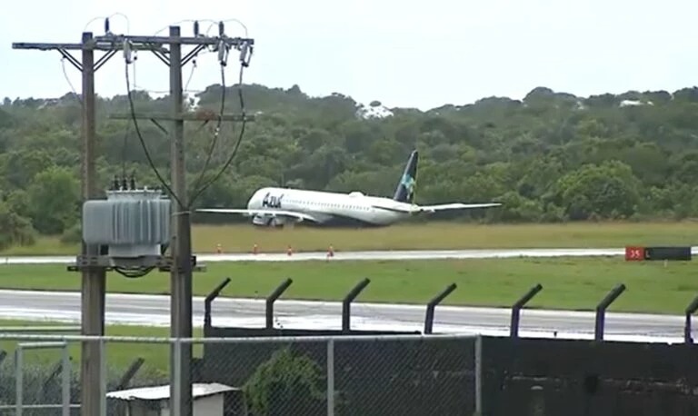 Avião da Azul sai da pista e vai parar em área de vegetação