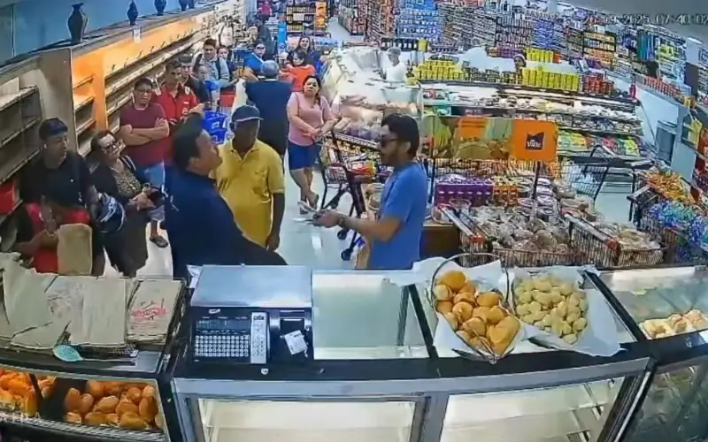 Durante coletiva realizada nesta quarta (1), o delegado Cícero Túlio relatou que a briga começou dentro da loja, na fila da padaria. Na ocasião, o suspeito tentou furar a fila, mas a vítima o impediu e alertou para a ordem de atendimento. As câmeras de segurança registraram o momento do embate.