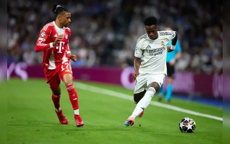 O Bayern reagiu com Harry Kane e Pavlovic, mas o Real voltou à frente com gol de Kylian Mbappé após passe de Vinícius Júnior, fechando um primeiro tempo de muita intensidade.
