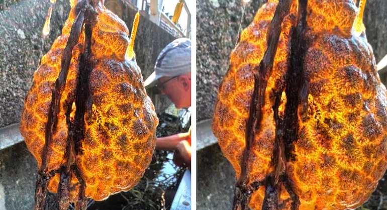 “Isto estava pendurado no fundo de uma ilha flutuante. Estes são animais que formam uma colônia juntos: briozoários de saco de água”, disse a ecologista Anne Nijs ao site holandês “AD”.