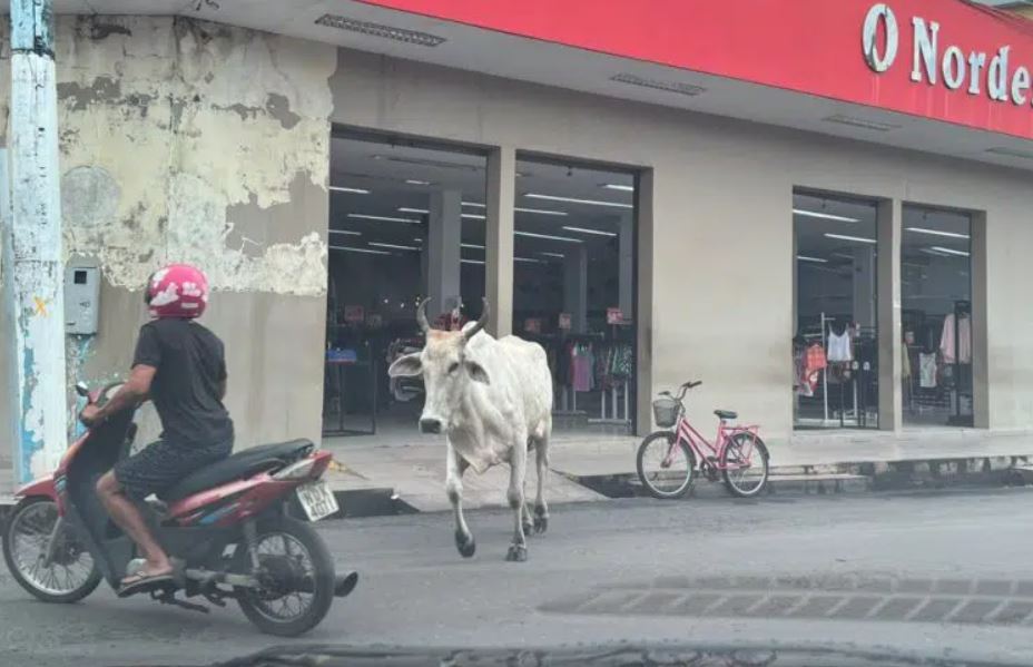 Manaus/AM – Um boi conseguiu escapar de um matadouro na cidade de Parintins e acabou invadindo várias lojas no município nessa segunda-feira (7).