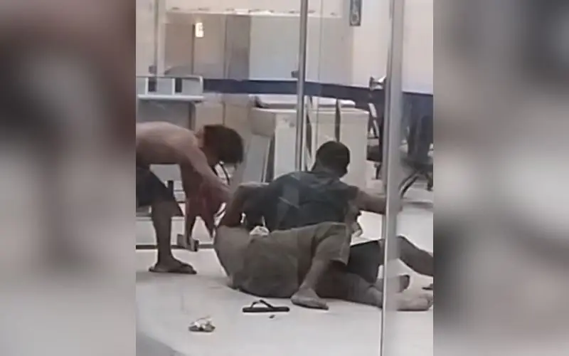 Três moradores em situação de rua protagonizaram uma cena inusitada dentro de uma agência da Caixa Econômica Federal, em Manacapuru, na região metropolitana de Manaus. O episódio, registrado em vídeo por um popular do lado de fora, misturou pancadaria, bebida alcoólica e trilha sonora natalina.