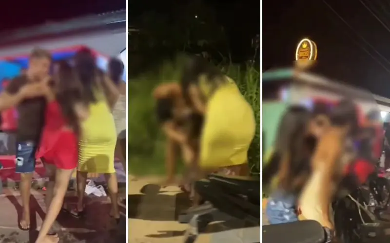 Vídeos que circularam nas redes sociais mostram as duas inicialmente agarradas, enquanto curiosos assistem à cena. Em seguida, amigas das envolvidas entram no meio da confusão — algumas tentando separar, outras aparentemente só aumentando o “evento”.
