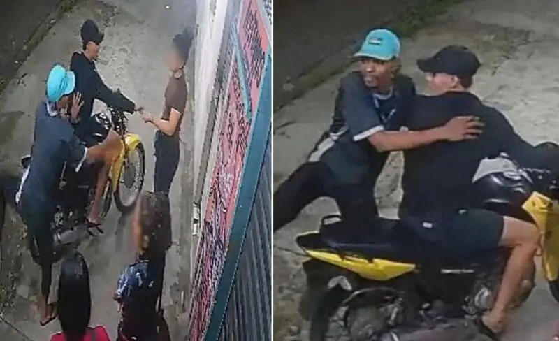 As imagens mostram as vítimas paradas na calçada, à espera do ônibus, quando são surpreendidas por uma dupla que chega ao local em uma motocicleta. Os suspeitos sobem na calçada e encurralam as mulheres. Em seguida, o homem que estava na garupa desce do veículo, saca uma arma de fogo e aponta em direção às vítimas, fazendo ameaças.