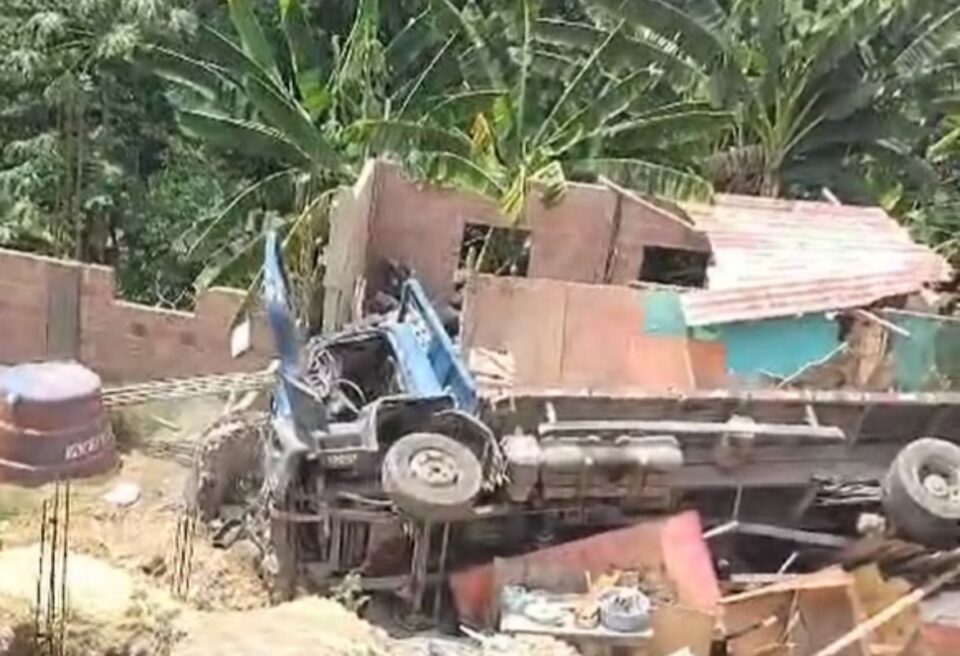 Manaus – Um caminhão de material de construção perdeu o controle e atingiu uma casa, na manhã desta quinta-feira (28), na Rua 6, Parque Jardim Mauá, bairro Mauazinho, zona leste de Manaus. Uma tragédia foi evitada por pouco. Na casa estavam três irmãos, um deles ficou ferido ao tentar proteger os outros dois.