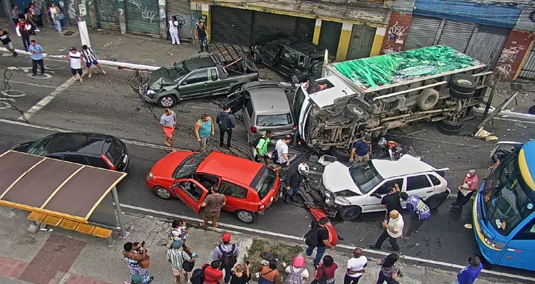 Ao telejornal Bom Dia Rio, da TV Globo, testemunhas relataram que um caminhão que transportava frangos congelados perdeu o controle e arrastou carros, motos e também um ônibus por alguns metros. Alguns automóveis acabaram subindo a calçada e invadiram lojas, que ainda não estavam abertas.