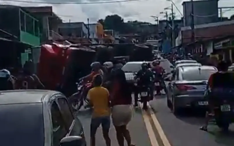 Um caminhão que transportava pallets tombou na tarde desta quinta-feira (5), na rua Hisbisco, conhecida como “Pista da Raquete”, no bairro Nova Vitória, zona leste de Manaus. O acidente causou prejuízos materiais e chamando a atenção de moradores e motoristas que passavam pelo local.