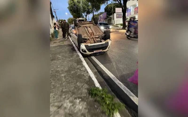 Um táxi, modelo Fiat Mobi, capotou na noite desta segunda-feira (13), na Avenida Jacira Reis, bairro Dom Pedro, zona centro-oeste de Manaus.