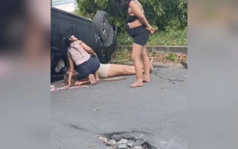 Consequentemente o impacto arremessou as ocupantes para fora do veículo. Duas delas conseguiram se levantar e tentaram socorrer a terceira passageira, que ficou inconsciente e presa na pista.