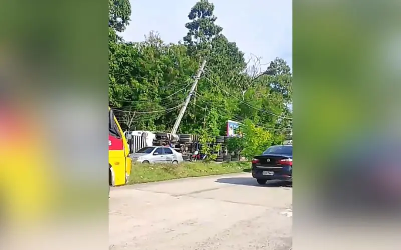 O caso ocorreu na avenida Buriti, nas proximidades de um retorno que dá acesso à Bola da Suframa. Com o impacto, o caminhão colidiu com um poste de energia, que ficou inclinado.