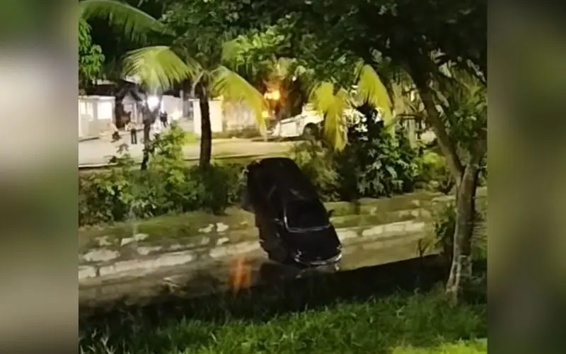 Os vidros do carro possuem película escura, impedindo que se saiba se havia ocupantes no interior do veículo. Até o momento, não há informações adicionais sobre vítimas ou circunstâncias do acidente. As autoridades ainda não se pronunciaram sobre o caso.