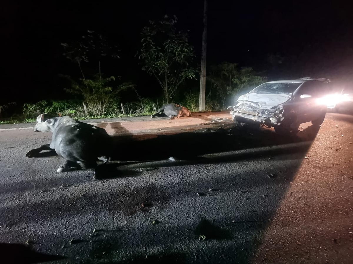 Segundo a Polícia Rodoviária Federal (PRF), os animais teriam invadido a pista e o condutor do carro não teria conseguido frear e o veículo acabou parcialmente destruído. A frente do carro ficou completamente destruída.