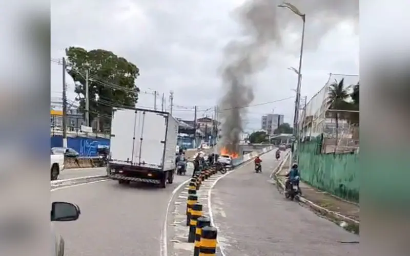 Veículo pega fogo e causa transtornos no trânsito na avenida Darcy Vargas