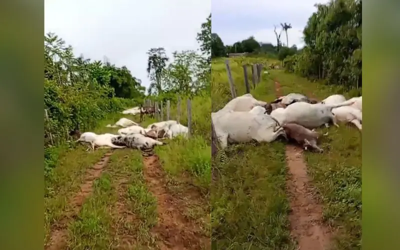 Primeiramente, o caseiro registrou a situação em vídeo, onde narra, em tom de desespero, o momento em que encontrou os animais mortos. De acordo com ele, o acidente aconteceu quando o gado estava sendo levado para o curral.