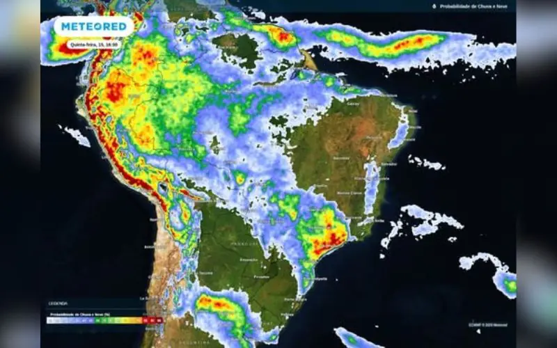 Na região Norte, são esperadas chuvas entre 30 e 60 mm por hora, com acumulados de até 100 mm por dia. Além disso, a previsão aponta para ventos de até 100 km/h e risco de raios. A atuação da Zona de Convergência Intertropical (ZCIT) pode provocar volumes superiores a 150 mm em áreas do Amapá, Amazonas e Pará até o dia 19.
