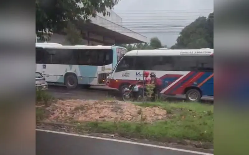 Uma colisão entre dois ônibus aconteceu na manhã desta quinta-feira (26), na avenida Margarita, no bairro Nova Cidade, zona norte de Manaus.