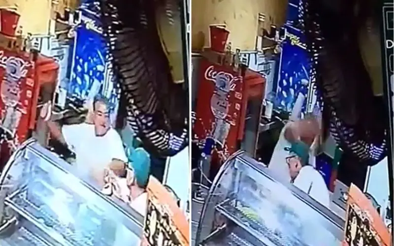 As imagens mostram o momento em que o agressor chega ao local e ataca a vítima com diversos golpes, principalmente no peito e nas costas, derrubando-a no chão. Um cliente que tentou intervir também, mas o agressor também lhe feriu e fugiu após o crime.