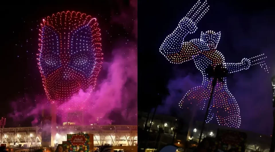 O espetáculo no céu foi acompanhado por uma trilha sonora criada especialmente para a ocasião, com as músicas do filme “Deadpool & Wolverine”. Veja imagens: