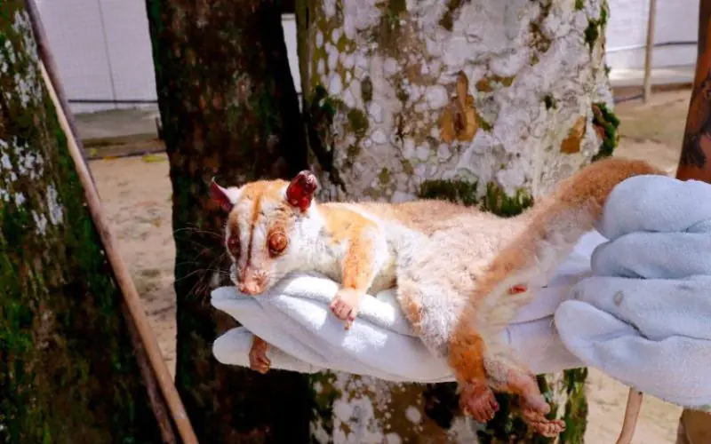 Um trabalhador encontrou uma cuíca-lanosa (Caluromys lanatus) ferida na manhã de quarta-feira (18), no bairro Chapada, zona centro-sul de Manaus. O animal, que apresentava dificuldade para se locomover, estava dentro do terreno de um órgão municipal.