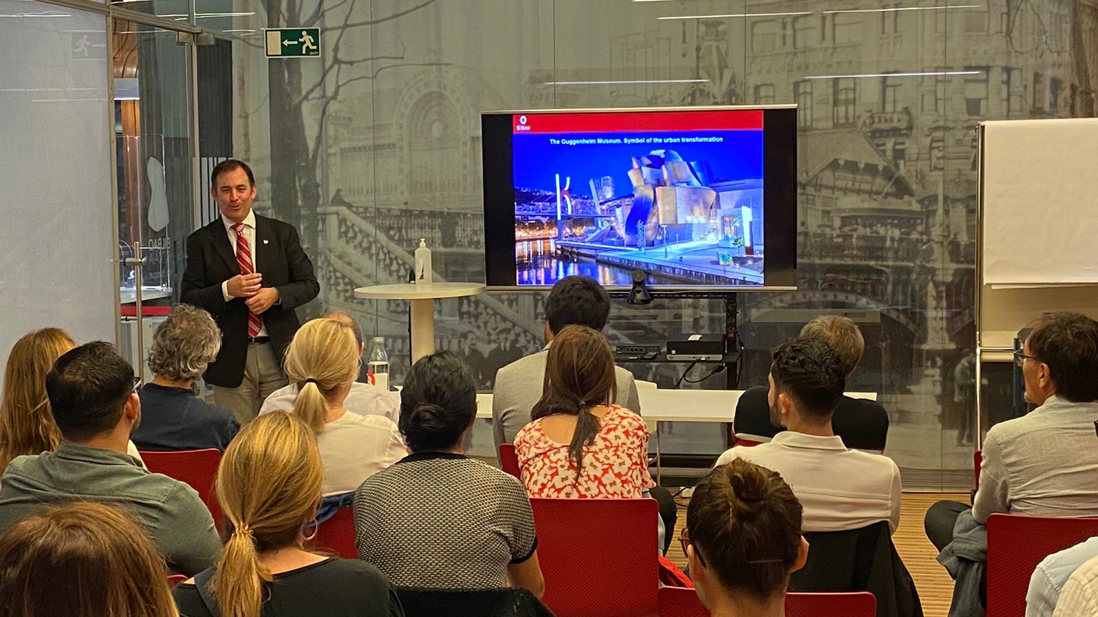 Nesta quinta-feira, 19/10, o encontro contou com visita à Câmara Municipal de Bilbao, com apresentações de projetos estratégicos pelo conselheiro Asier Abaunzua, e do programa Bilbao Ria 200, criado a partir de uma parceria público-privada para fazer a gestão das iniciativas de regeneração urbana, com financiamento das intervenções utilizando fundos interinstitucionais e europeus, bem como lucros provenientes da venda de terras públicas reconstruídas. Pela tarde, o grupo conheceu o patrimônio industrial da cidade, incluindo um passeio de barco até o mar, na ponte Bizkaiko Zubia. A transformação da cidade começou com a inauguração do Museu Guggenheim Bilbao, sendo um case de regeneração urbana, da transformação de áreas abandonadas e do desenvolvimento pós-industrial.