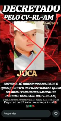 Poucas horas depois, passou a circular em aplicativos de mensagens a imagem da vítima, onde a facção Comando Vermelho decretou o jovem de morte.