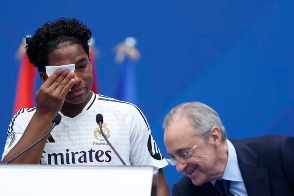 — Endrick já é jogador do Real Madrid. O presidente Florentino Pérez o recebeu na sala de reuniões da Cidade Real Madrid, onde o atacante brasileiro assinou o contrato que cumprirá com nosso clube durante as próximas seis temporadas. Após a assinatura, Endrick recebeu uma réplica do estádio, um relógio e uma camisa com seu nome e número — divulgou o Real Madrid.