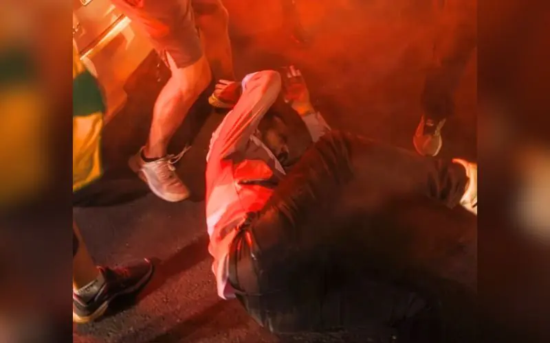 Sua fala gerou reação imediata do grupo presente. Ao terminar, Lopes tentou se afastar, mas foi perseguido, recebeu socos e chutes e teve a camisa rasgada. Ele foi retirado do local pela polícia e levado ao IML, de onde gravou vídeo dizendo estar “bem na medida do possível”.
