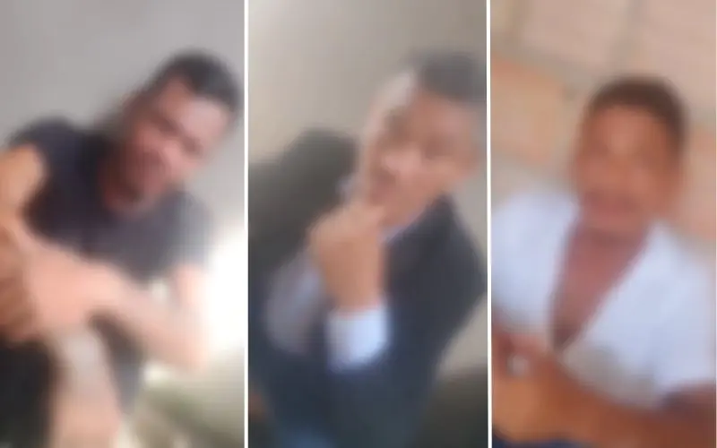 Nas imagens, dois deles afirmam residir no bairro Tancredo Neves, na Zona Leste, enquanto o terceiro, vestido de terno, declara ser da região do Tarumã, na Zona Oeste de Manaus.
