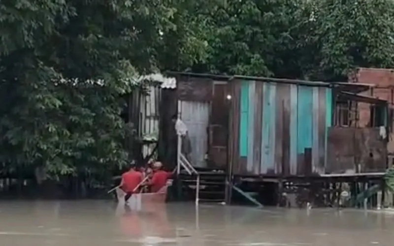 Uma família precisou ser resgatada de barco na tarde desta segunda-feira (29) após ficar isolada por um alagamento na Rua Visconde de Itaboraí, no bairro Jorge Teixeira, zona leste de Manaus. A ação foi realizada por agentes do Corpo de Bombeiros Militar do Amazonas.