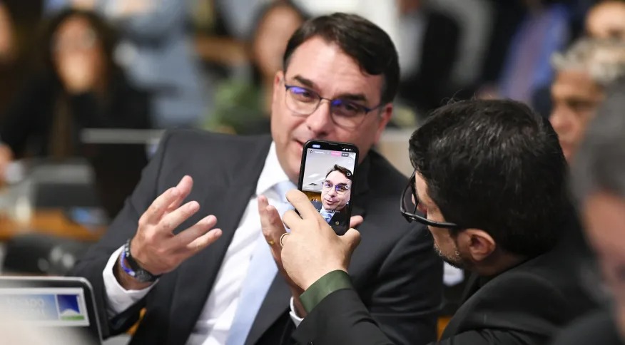 “Sobre o que está sendo noticiado hoje com relação ao senador Marcos do Val, ele já havia me relatado o que tinha acontecido, que isso seria trazido a público. Contudo numa linha de que essa reunião que aconteceu, ela seria uma tentativa de um parlamentar de demover as pessoas que estavam nessa reunião de fazer algo absolutamente inaceitável, absurdo e ilegal”, diz Flávio Bolsonaro.