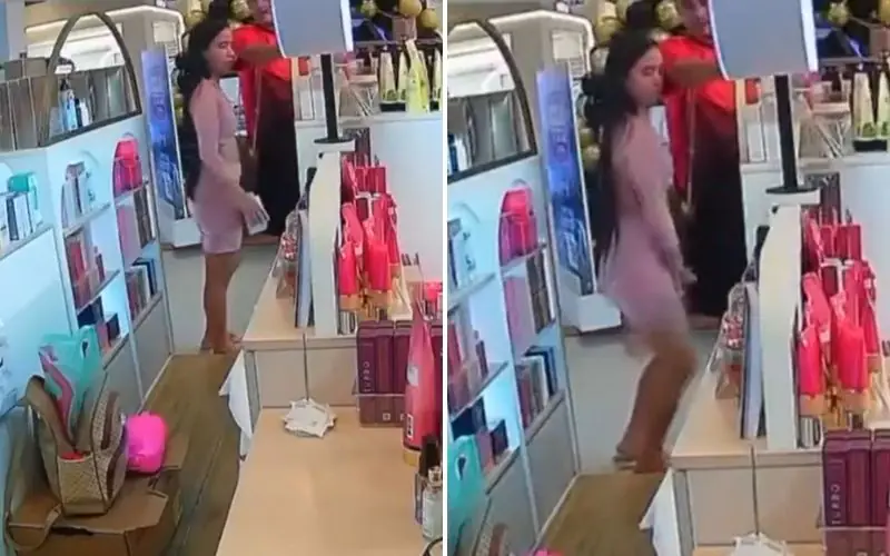 Nas gravações, a suspeita aparece acompanhada de um homem enquanto observa mercadorias expostas nas prateleiras. Em determinado instante, ela pega uma caixa e a oculta sob a roupa. Logo depois, os dois deixam o estabelecimento sem realizar o pagamento.