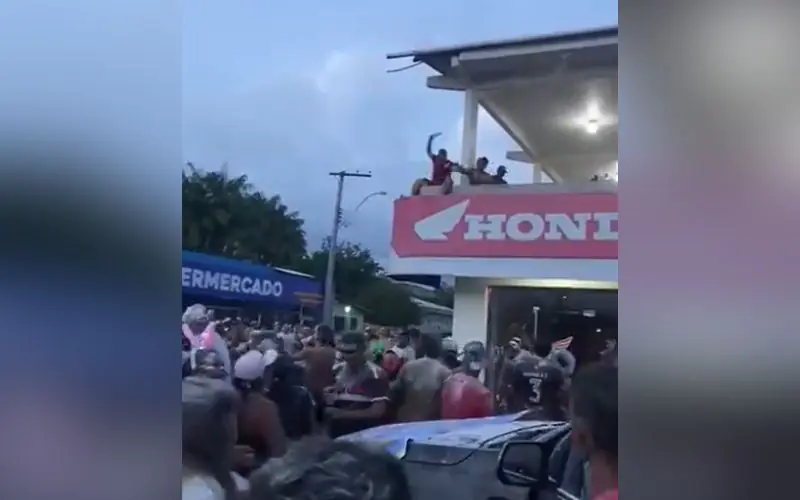 Um homem arremessou uma garrafa do segundo andar de um prédio durante a passagem do Bloco da Maizena, no município de Borba, no interior do Amazonas.