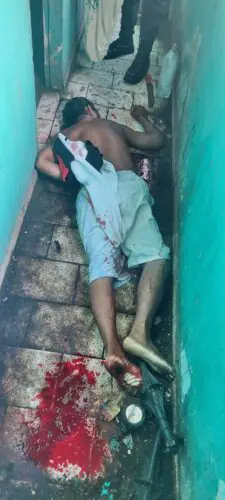 De acordo com informações preliminares, o homem vestia apenas uma bermuda branca, enquanto a camisa estava jogada sobre as costas. A vítima apresentava várias perfurações no peito e no abdômen.