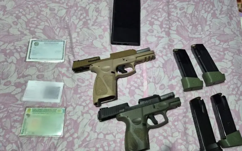 Com o suspeito, os policiais apreenderam duas pistolas Taurus, modelos G2C e G3 calibre 9mm, 50 munições e quatro carregadores.
