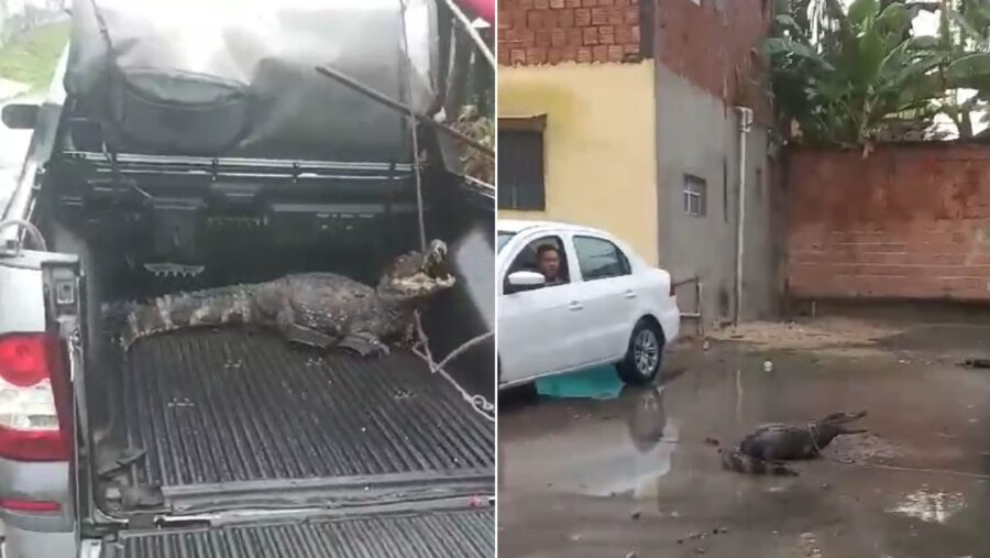 Manaus – Dois jacarés foram captados depois de passear pelas calçadas em Manaus, na tarde deste domingo (22). A cidade recebeu um grande volume de chuvas, que fez transbordar igarapés e deixou diversas ruas alagadas.