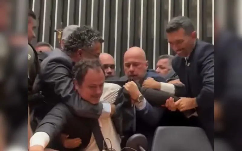Mais cedo, a Polícia Legislativa determinou a retirada de profissionais de imprensa do plenário. A confusão começou quando Glauber ocupou a cadeira do deputado Hugo Motta (Republicanos-PB) para impedir o andamento da sessão. Ao conduzirem o deputado pa fora, os policiais abriram um corredor para sua passagem, mas a ação resultou em empurrões e agressões a jornalistas e pessoas próximas à entrada do plenário.
