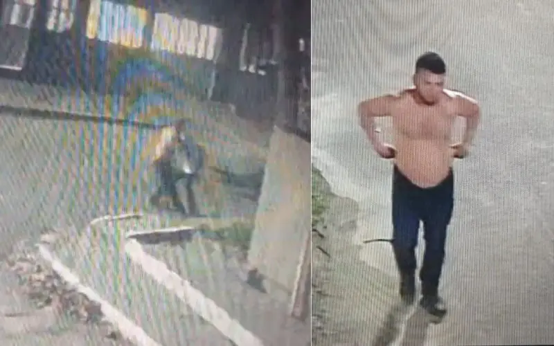 A princípio, as imagens dão a entender que ele estava perseguindo a vítima e, assim que as outras pessoas se afastam, ele vê o momento certo para atacá-la.