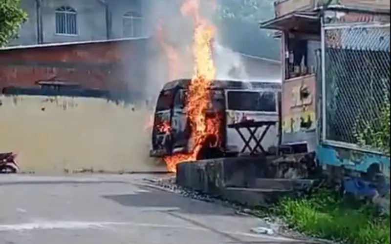 Uma Kombi utilizada para transporte de passageiros no sistema de lotação pegou fogo na tarde desta segunda-feira (16) na Avenida Itacolomi, no bairro Armando Mendes, zona leste de Manaus.
