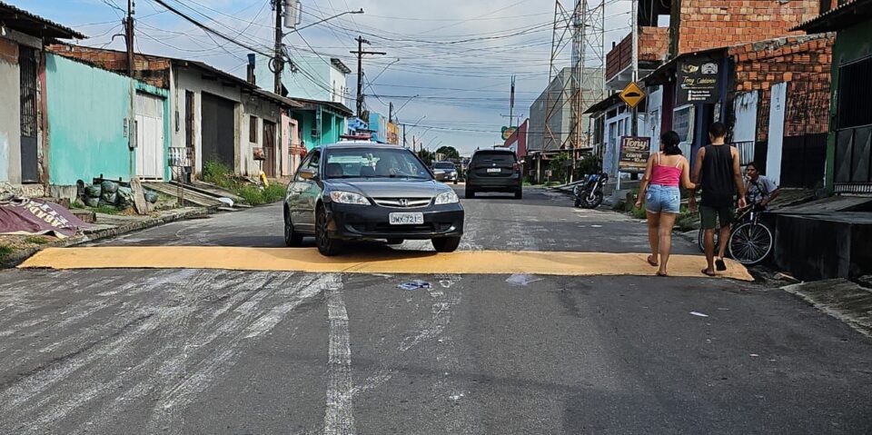 Atendendo à solicitação dos moradores, a Prefeitura de Manaus, por meio do Instituto Municipal de Mobilidade Urbana (IMMU), realizou, neste sábado, 18/5, a implantação da sinalização horizontal no redutor de velocidade na avenida Creta, no bairro Nova Cidade, zona Norte da cidade, para melhorar a segurança viária no local.