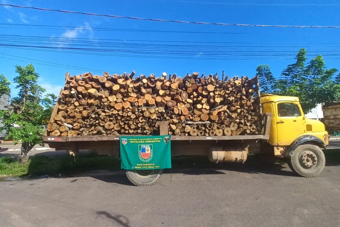 Na tarde de quarta-feira, por volta das 14h50, os policiais militares do Batalhão de Policiamento Ambiental (BPAmb) realizavam patrulhamento na rodovia AM-070, quando avistaram um caminhão amarelo carregado de lenha.