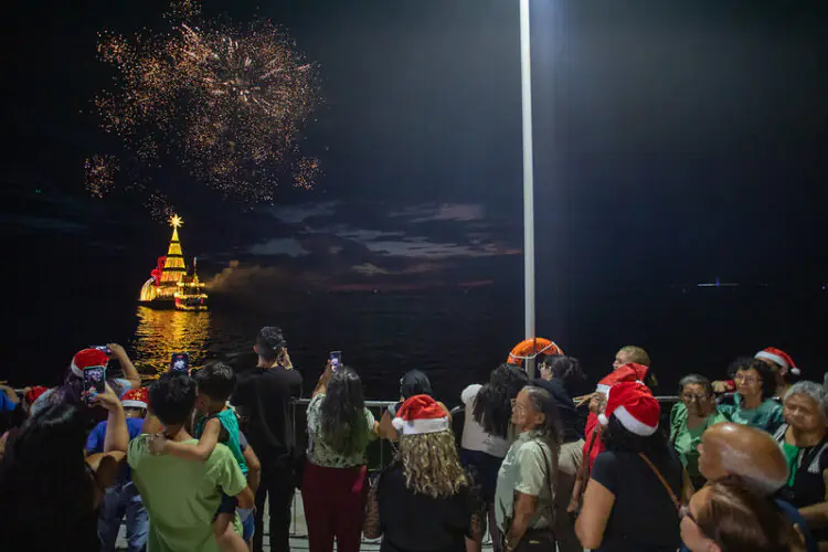 A cerimônia de entrega ocorreu no píer Manaus 355, no mirante Lúcia Almeida, reunindo famílias, lideranças comunitárias e autoridades. Segundo o prefeito, a proposta é garantir que moradores da zona rural recebam a mesma experiência natalina oferecida na área urbana.